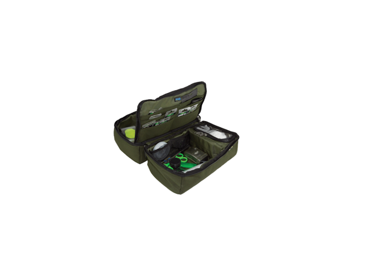 Dieci tasche interne e cinque portafogli in plastica trasparente offrono spazio di archiviazione funzionale, inoltre c'è uno scomparto con cerniera foderato in alluminio per mantenere i sacchetti di PVA lontano dall'umidità.