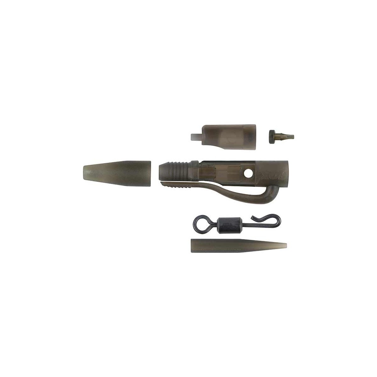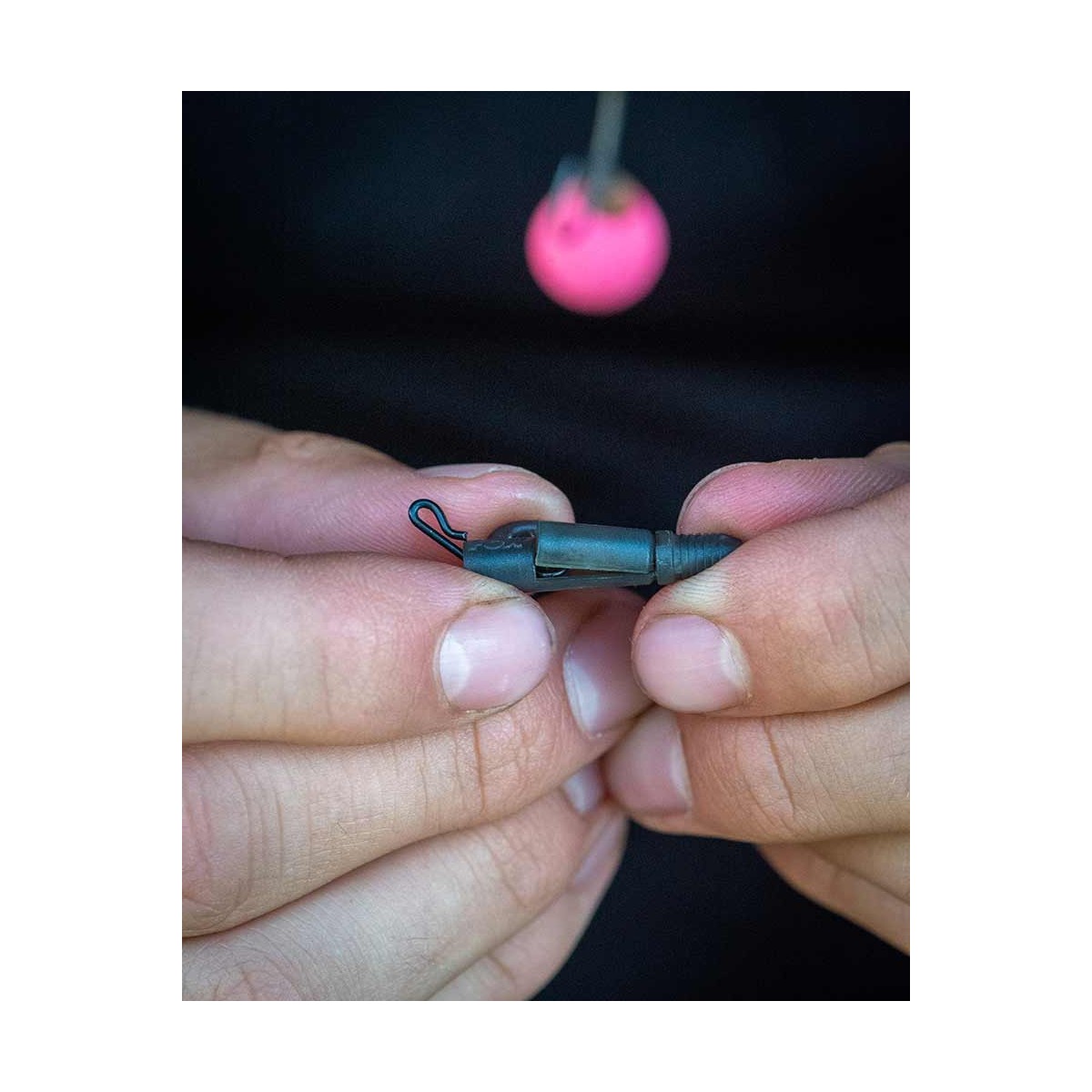 Quando si utilizza il tubo per fissare la lenza madre o per proteggere i fianchi del pesce, è fondamentale che non risalga lungo la lenza durante il combattimento, altrimenti la lenza madre potrebbe sollevare le squame, danneggiando il pesce. Il clip per piombo Tubing assicura che il tubo non scivoli lungo la lenza. È dotato di una finestra laterale che consente l'accesso interno per infilare un imbuto di bloccaggio (cappello da strega) nella lenza madre che viene spinta nel tubo. Quando questa finestra viene riposizionata, il perno blocca la girella e il tubo in posizione, impedendo al tubo di scivolare fuori dalla clip. La gomma di precisione sulla coda consente al piombo di staccarsi dalla clip in caso di impigliamento, ma a differenza di altre clip, il tubo non verrà trascinato con sé.