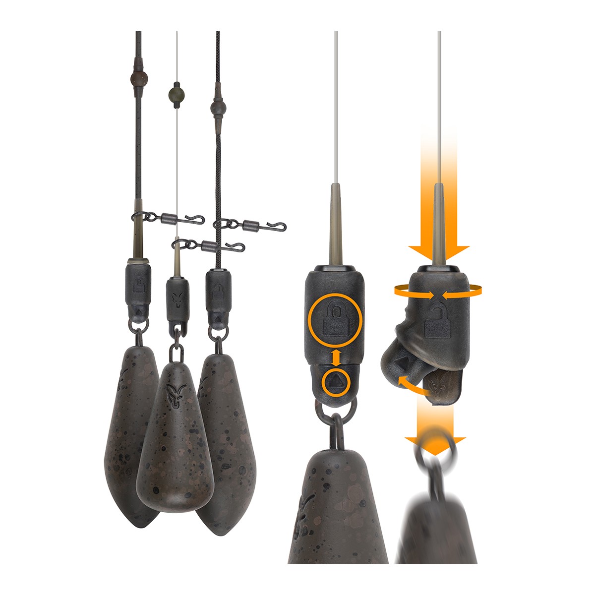 - Il piombo può essere bloccato in posizione o impostato per essere rilasciato, se necessario, ruotando il manicotto di 180 gradi.