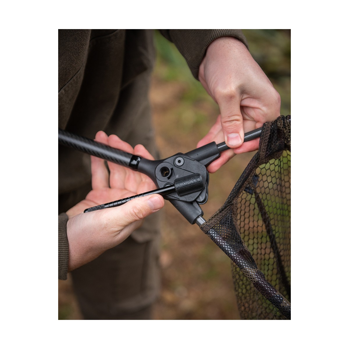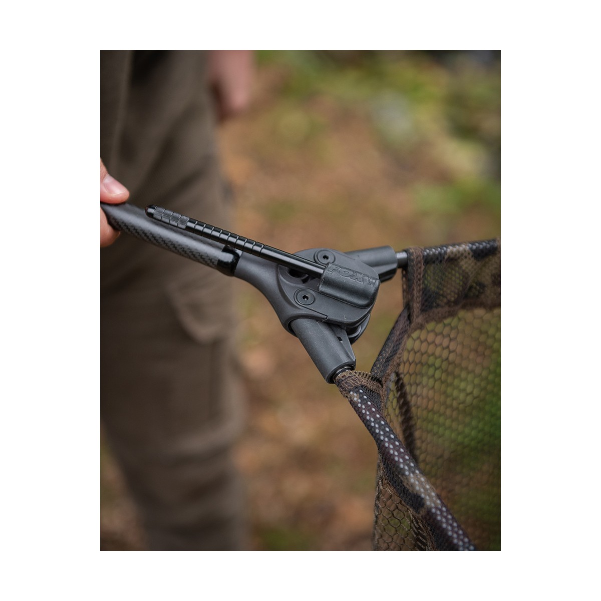 La soluzione definitiva per un montaggio e smontaggio rapido del guadino. Al centro del design si trova un esclusivo blocco distanziatore in nylon rinforzato con fibra di vetro, stampato a iniezione, dotato di leva removibile. La leva si inserisce semplicemente per aprire i bracci e si estrae per chiuderli, rendendo il montaggio e lo smontaggio rapidi, intuitivi e sicuri. I bracci del guadino sono dotatI di manicotti magnetici che si agganciano saldamente al blocco distanziatore. Una volta in sede, la leva può essere azionata con una sola mano per bloccare i bracci in posizione – e altrettanto facilmente invertita per richiuderli. Per una maggiore versatilità, la leva può essere avvitata in modo sicuro al blocco distanziatore, creando un sistema di ritenuta quando utilizzata con il collarino di fissaggio per picchetti. Questo collarino si inserisce perfettamente nei picchetti Fox Camlok, bloccandosi in posizione tramite il sistema a camma. Il manico in carbonio 2K presenta un profilo a conicità ridotta, che migliora la flessibilità garantendo al tempo stesso un’eccellente rigidità. L’impugnatura rivestita in guaina termoretraibile offre una presa superiore, mentre il tappo terminale in acciaio inox assicura resistenza e durata. La rete mimetica completa la costruzione di alta gamma, unendo prestazioni ed estetica. Disponibile con bracci da 42 pollici, abbinabili ad un manico in due pezzi da 240 cm.