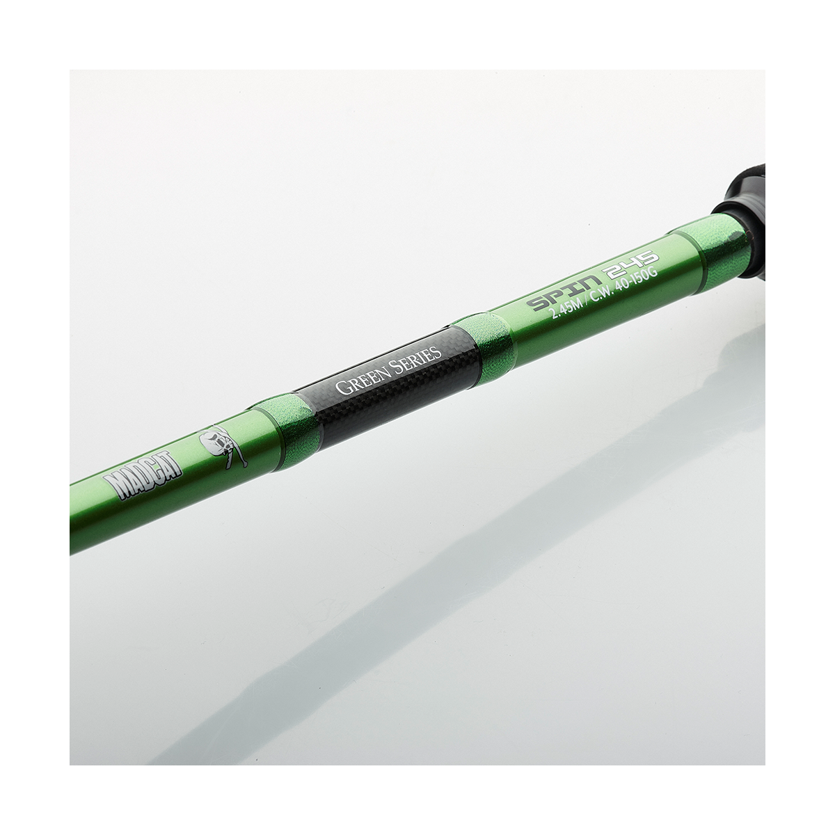 Canna Madcat Green Spin è abbastanza leggera da lanciare esche ma abbastanza potente da agganciare e combattere correttamente siluri di dimensioni record.