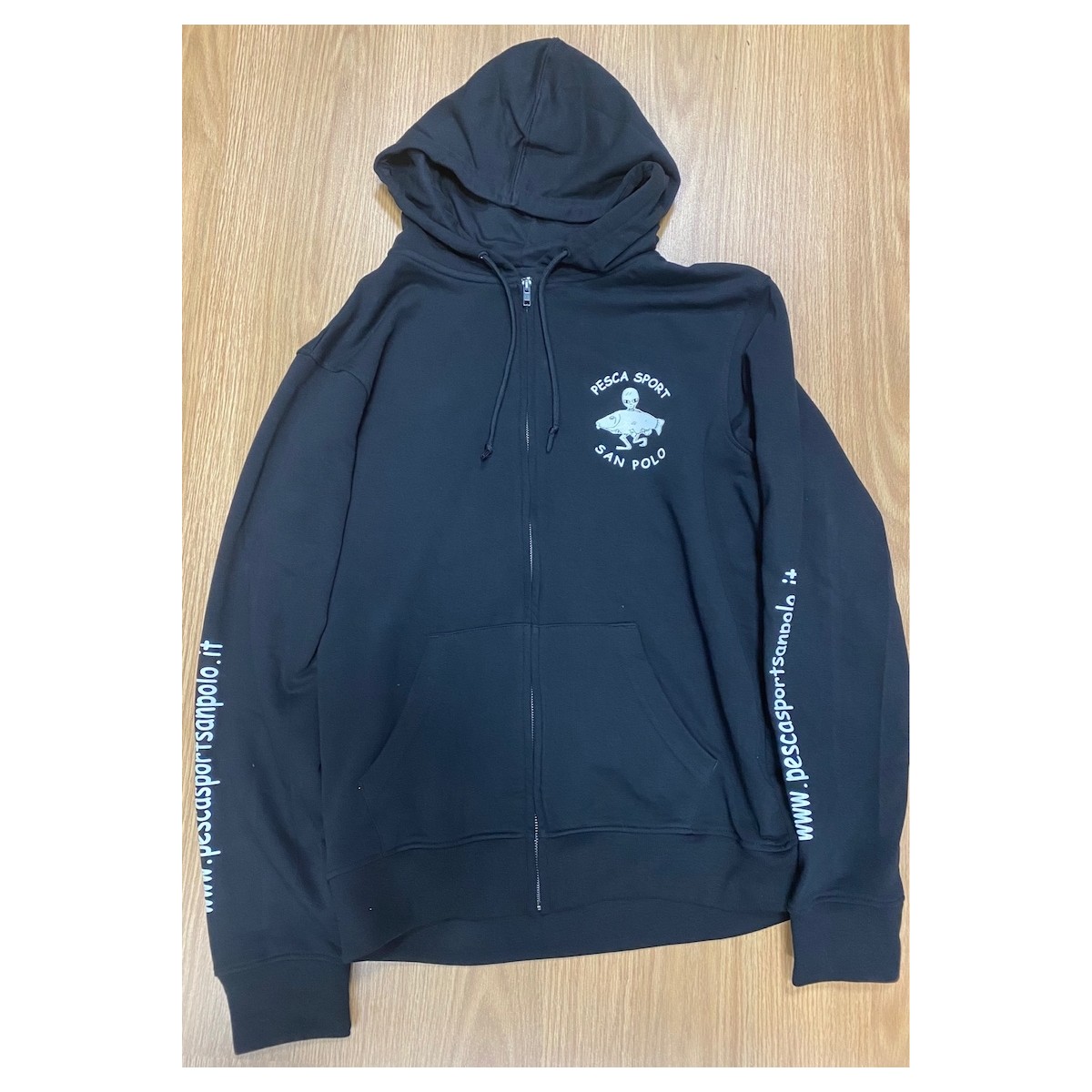 Felpa leggera con zip e cappuccio marchiata Pesca Sport San Polo