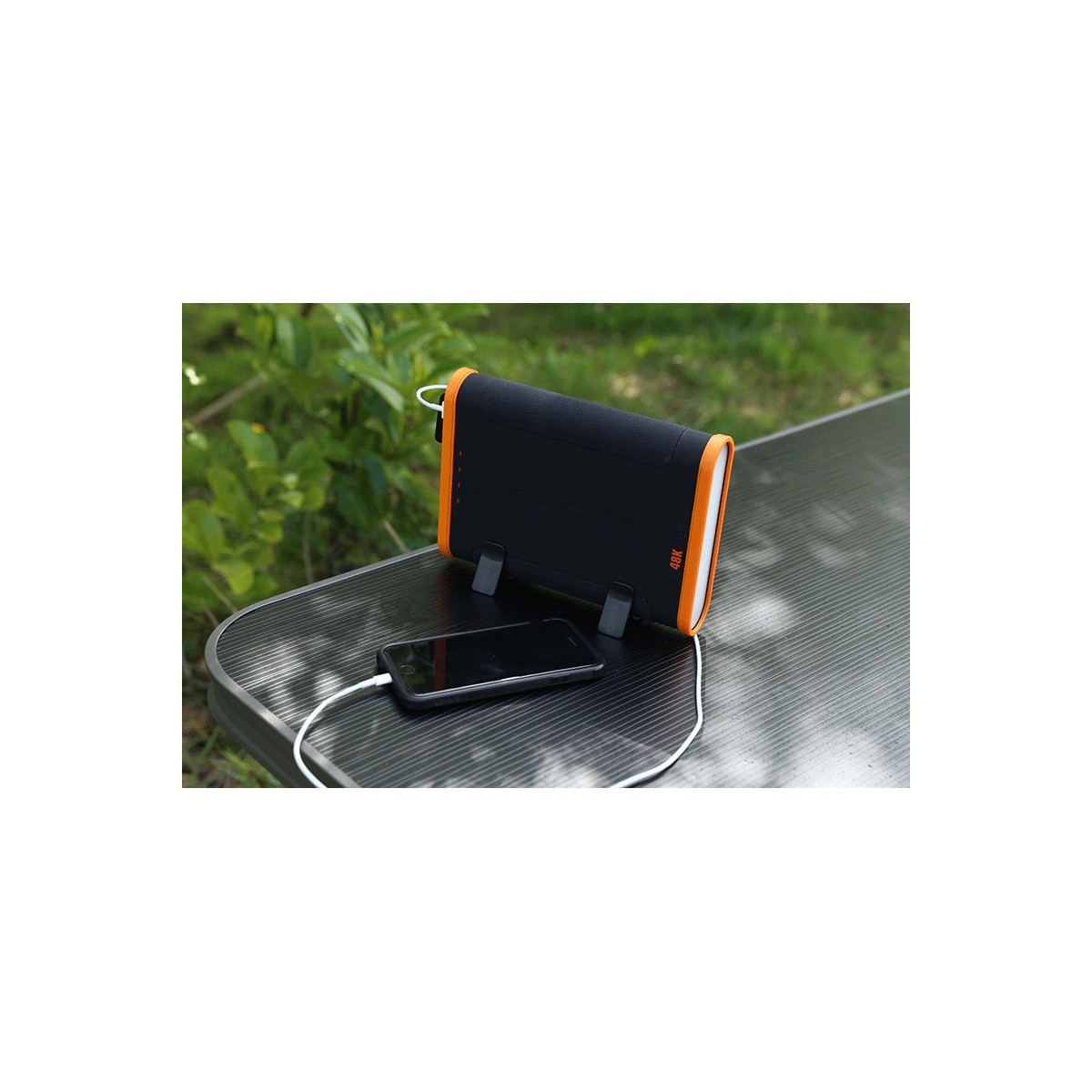 Fornito con caricabatteria, adattatore da parete e due sostegni che vi consentono di salvare spazio sul vostro tavolino da bivvy mantenendo il power pack appoggiato sul fianco